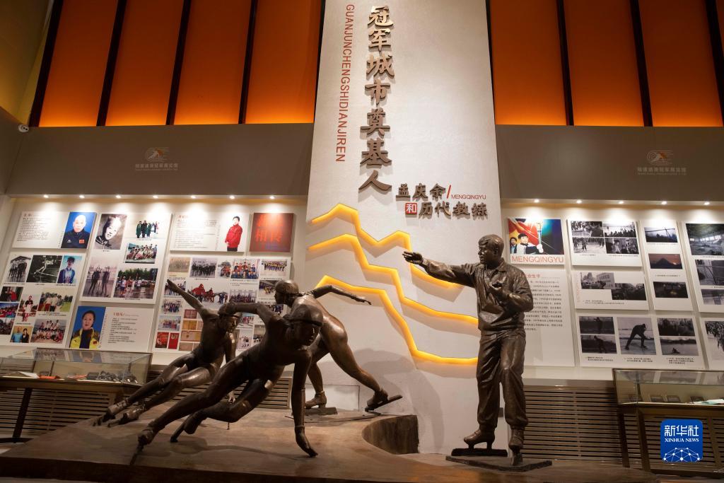 在七台河短道速滑冠军馆内展示