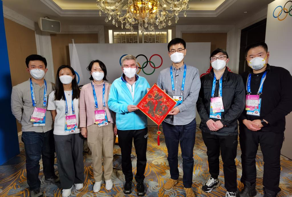 在采访开始前,巴赫手里拿着福字,通过新华社向中国人民拜年,祝大家虎年开心、成功。“冬奥会和春节相逢是完美的组合,虎象征着勇气、力量和成功,这也是我在春节向中国人民送出的祝福。”
