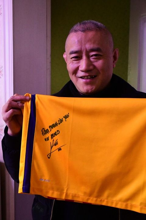 2月7日,张琳艳父亲张守武展示梅西签名球衣,梅西特地写下“zhanglinyan”以示激励。新华社记者谢佼摄
