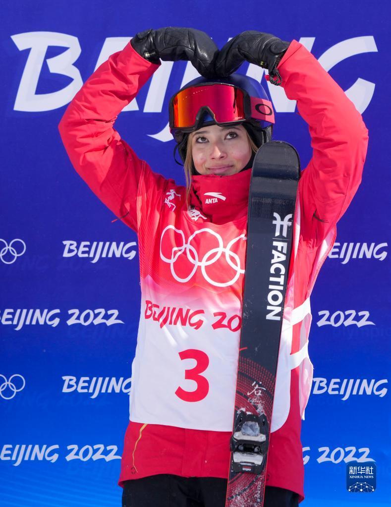 当日,北京2022年冬奥会自由式滑雪女子坡面障碍技巧决赛在张家口云顶滑雪公园举行。中国选手谷爱凌获得银牌。