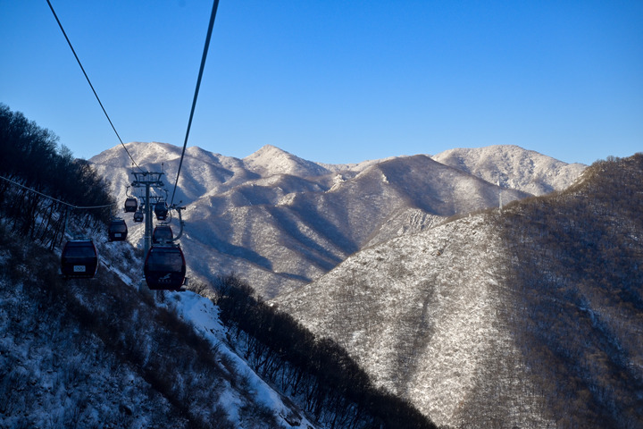 图为2月14日在国家高山滑雪中心索道上拍摄的雪景。新华社记者陈益宸摄