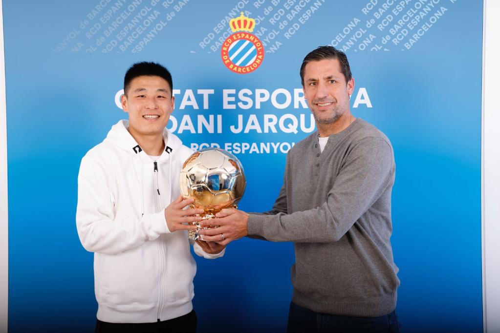 西班牙人足球俱乐部新闻发言人卡普德维拉为武磊颁发中国金球奖