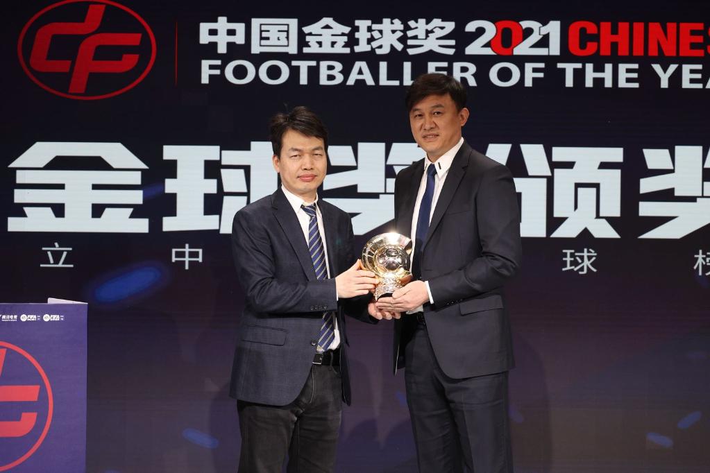 2021中国金球奖的最终争夺在武磊、郭田雨和张玉宁之间展开。经过国内外119名资深媒体人的投票,创造了中国男足单届世预赛进球纪录的武磊得到405分,第三次捧得中国金球奖。在2021赛季中超比赛中发挥出色的郭田雨和张玉宁分别以257分和240分位居其后。