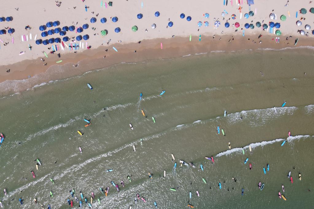 2月13日,游客在海南三亚皇后湾海域体验冲浪运动。新华社记者张丽芸摄