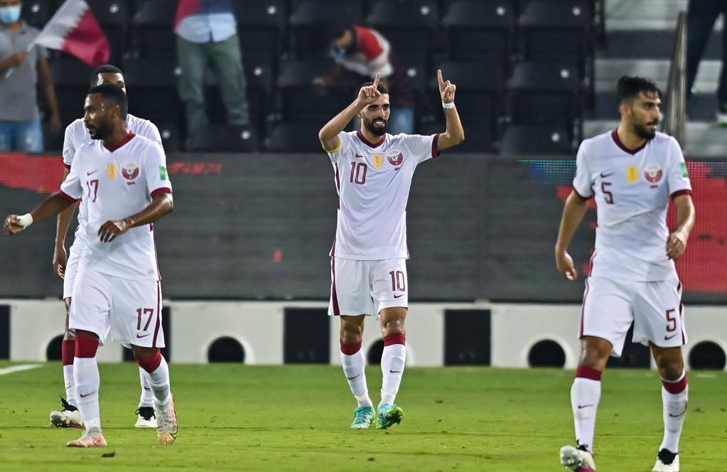 2021年6月7日,在卡塔尔首都多哈举行的2022年卡塔尔世界杯预选赛亚洲区40强赛中,卡塔尔队以1比0战胜阿曼队。新华社发(尼库摄)