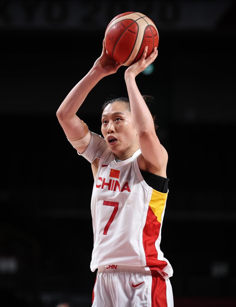 2021年8月4日,东京奥运会女篮四分之一决赛,中国队球员邵婷在比赛中罚篮。新华社记者潘昱龙摄