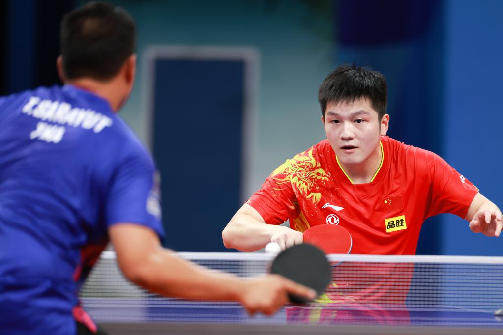 泰国男队此前三战皆负,本小组排名垫底。中国男队本轮派出林高远、樊振东、梁靖崑迎战。尽管林高远和梁靖崑在比赛过程中稍遇起伏,但中国队还是波澜不惊地连下三城轻取对手。