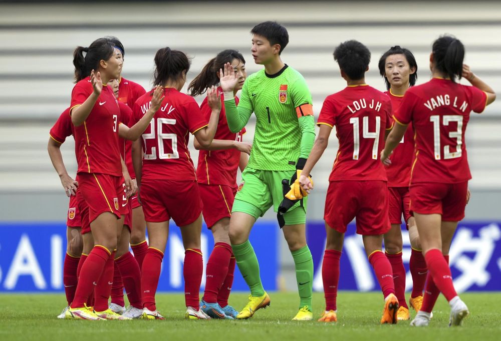 ↑7月20日,中国女足球员在2022东亚杯比赛中。新华社记者张笑宇摄