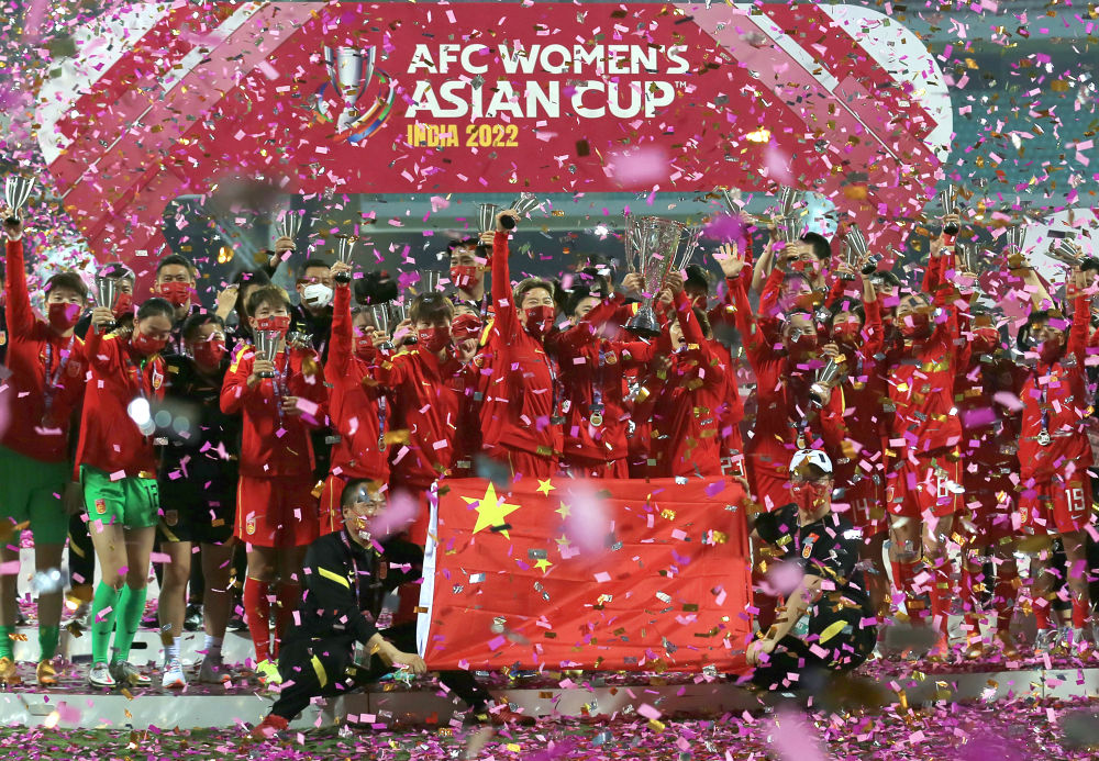 ↑2月6日,夺得女足亚洲杯冠军的中国队在颁奖仪式上。新华社发