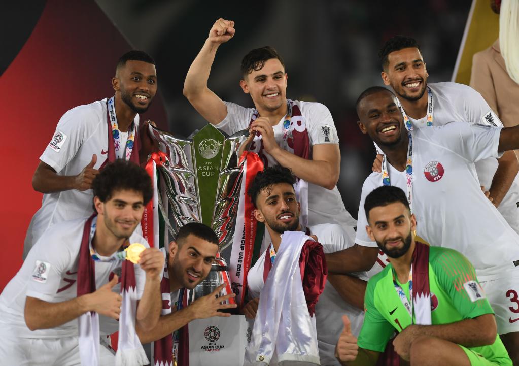卡塔尔队球员在庆祝2019年亚洲杯夺冠