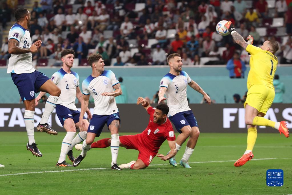 面对伊朗的“铁桶阵”,英格兰第35分钟打破僵局,贝林厄姆接卢克·肖左路下底传中禁区内头球破门。第43分钟,英格兰在角球进攻中再进一球,马奎尔头球摆渡,萨卡在小禁区前凌空抽射入网。三分钟后伊朗再遭打击,凯恩右路传中,斯特林中路跟进凌空垫射得分,为英格兰将比分改写为3:0。