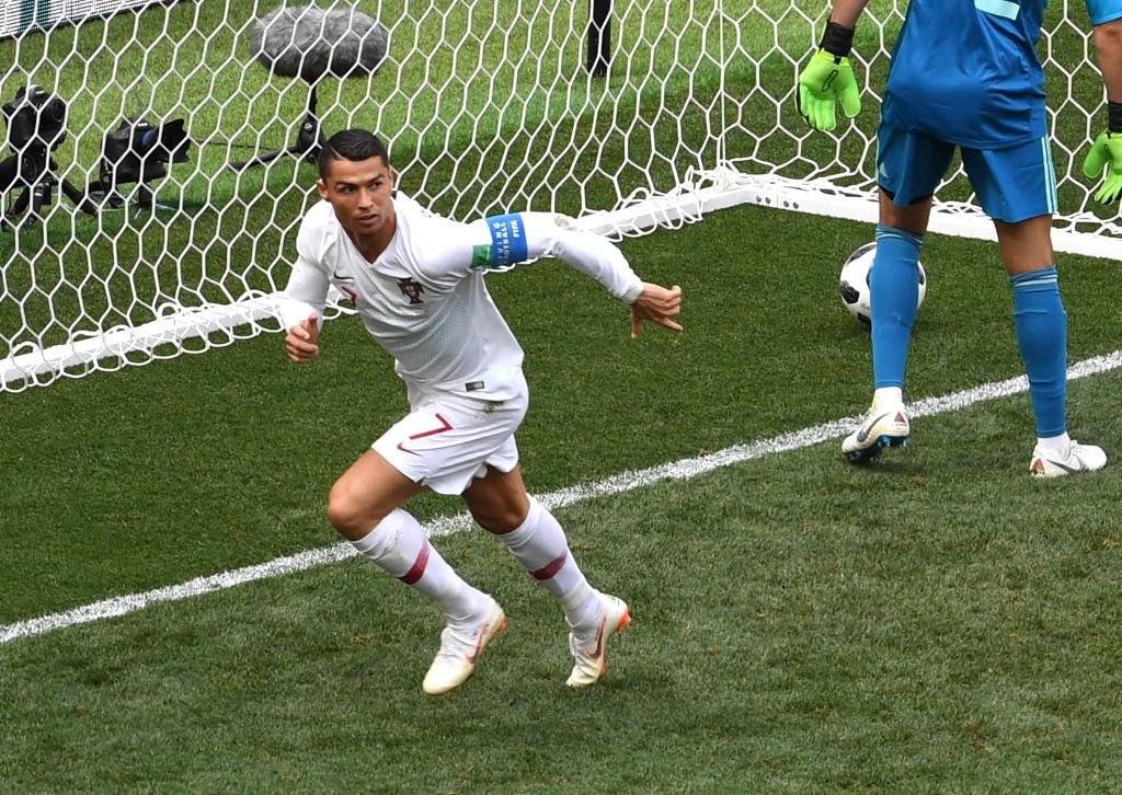 2018年6月20日,在俄罗斯世界杯葡萄牙队1:0战胜摩洛哥队的比赛中,C罗庆祝进球。新华社记者王毓国摄