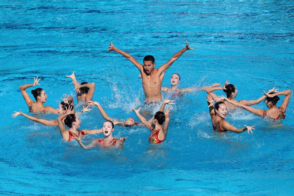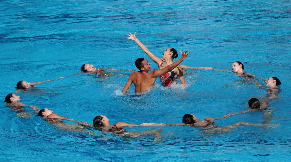 2022年布达佩斯游泳世锦赛花样游泳表演秀。新华社记者郑焕松摄