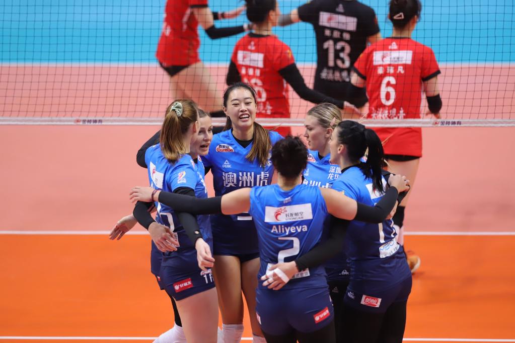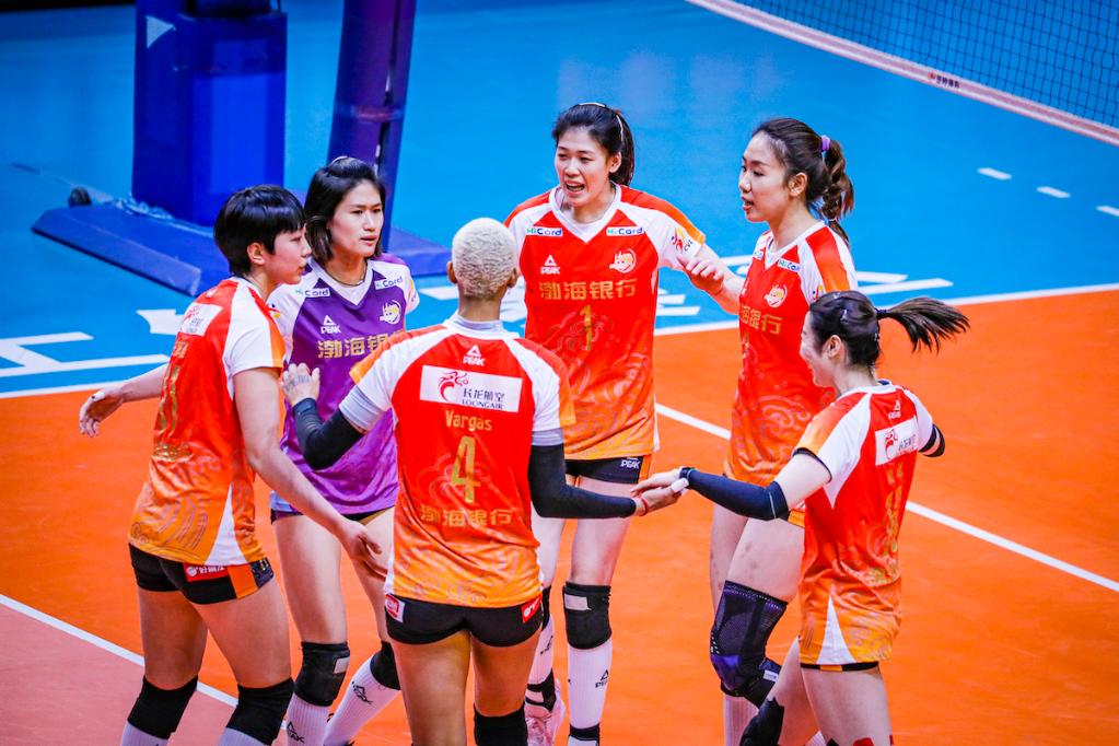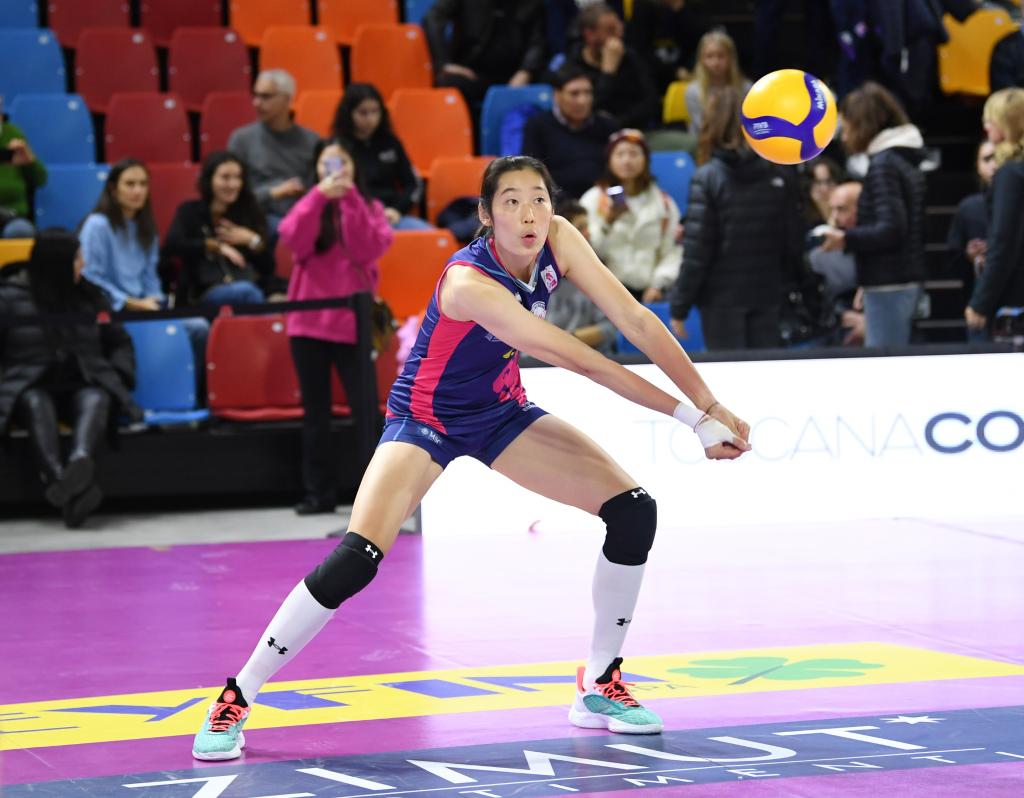 2022年11月16日,斯坎迪奇队球员朱婷在比赛前热身。新华社记者金马梦妮摄