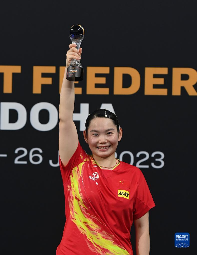 当日,在卡塔尔多哈进行的2023年WTT多哈支线赛女子单打决赛中,中国选手何卓佳以3比1战胜队友蒯曼,夺得冠军。