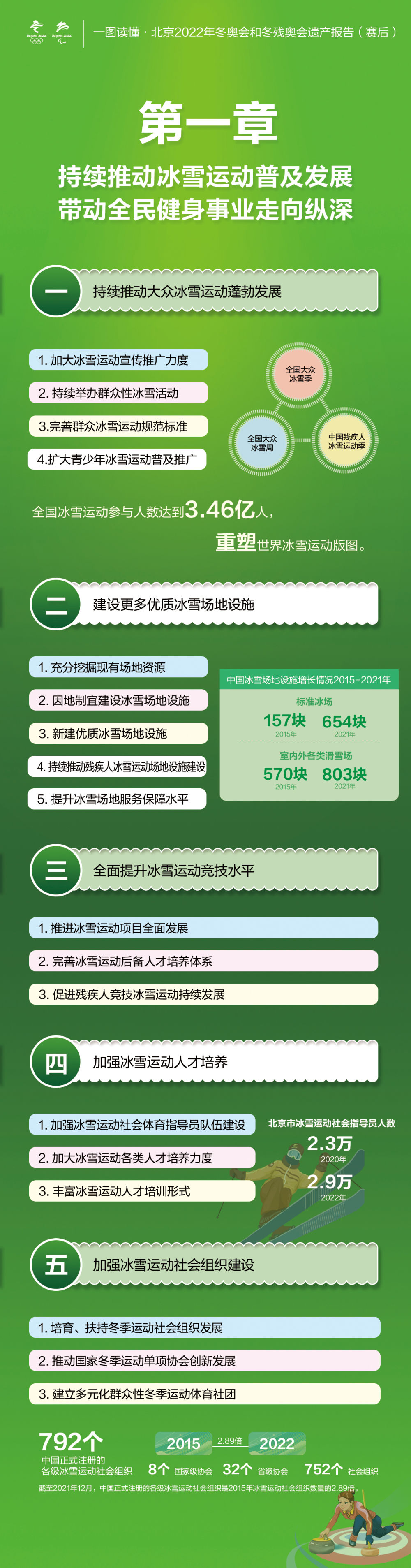 一图读懂《北京2022年冬奥会和冬残奥会遗产报告(赛后)》