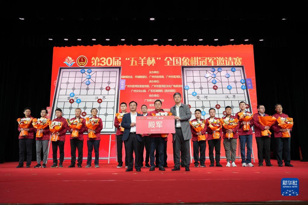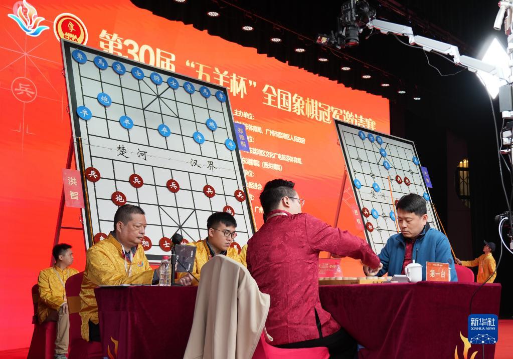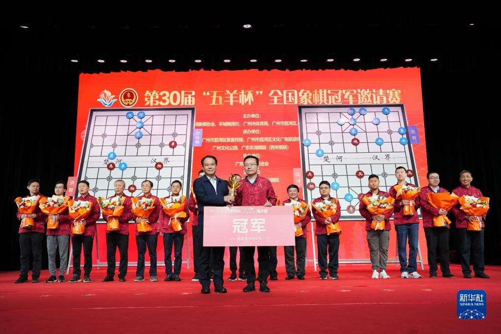 2月5日,洪智(中)获得第30届“五羊杯”全国象棋冠军邀请赛亚军。新华社发(陈秋明摄)