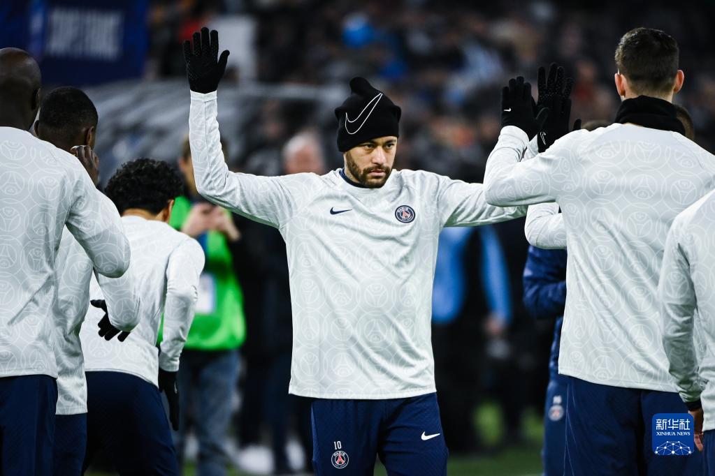 2月8日,巴黎圣日耳曼队球员内马尔在赛前热身。新华社发(克莱芒·马乌铎摄)