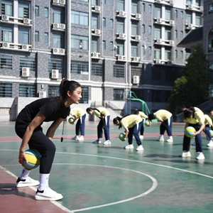 2022年9月6日,长沙市明德华兴中学的体育老师和篮球队主教练于红俊(前)在给学生上体育课。新华社记者 薛宇舸 摄