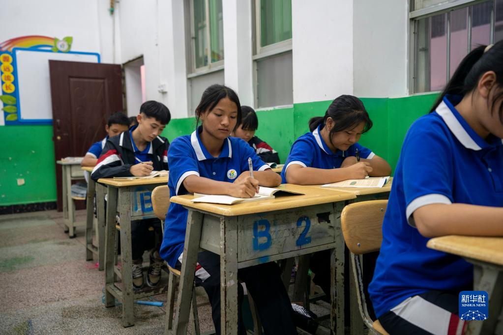 景洪市一中橄榄球队队员查晓慧(中)在教室上晚自习(2月13日摄)。新华社记者 陈欣波 摄