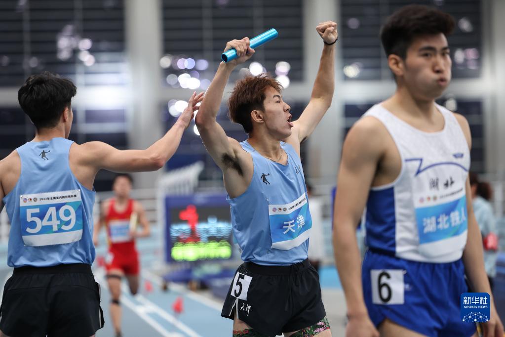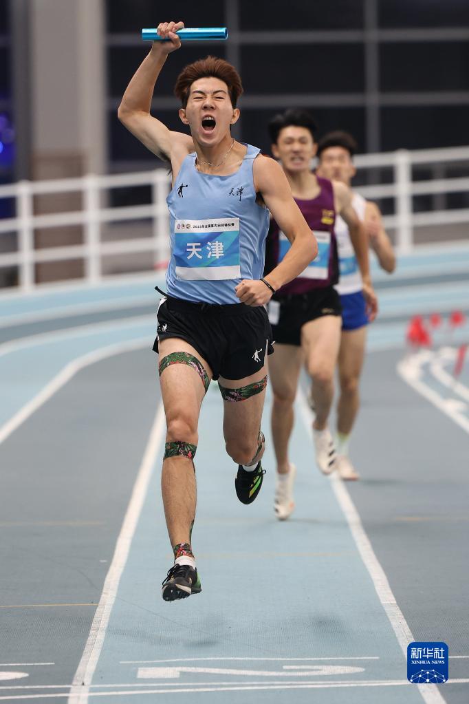 当日,在天津团泊体育中心进行的2023年全国室内田径锦标赛男子4X400米决赛中,天津队以3分10秒82的成绩夺得冠军,并创造该项目新的全国室内纪录。