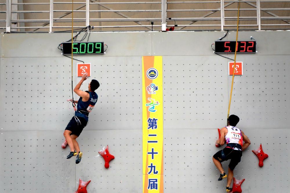 “像龙见国,刚破了全国纪录,然后就被淘汰。所以这个项目既要快,还得稳。太稳了,没有绝对的实力,你早早就会被淘汰;太快了,你爬一趟出了成绩,下一趟可能就不稳,还是会被淘汰。”钟齐鑫说。