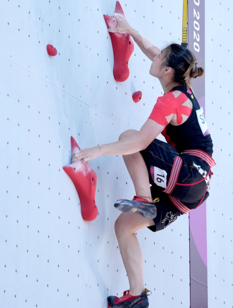 ↑2021年8月4日,宋懿龄在东京奥运会攀岩速度项目的比赛中。新华社记者陈建力摄