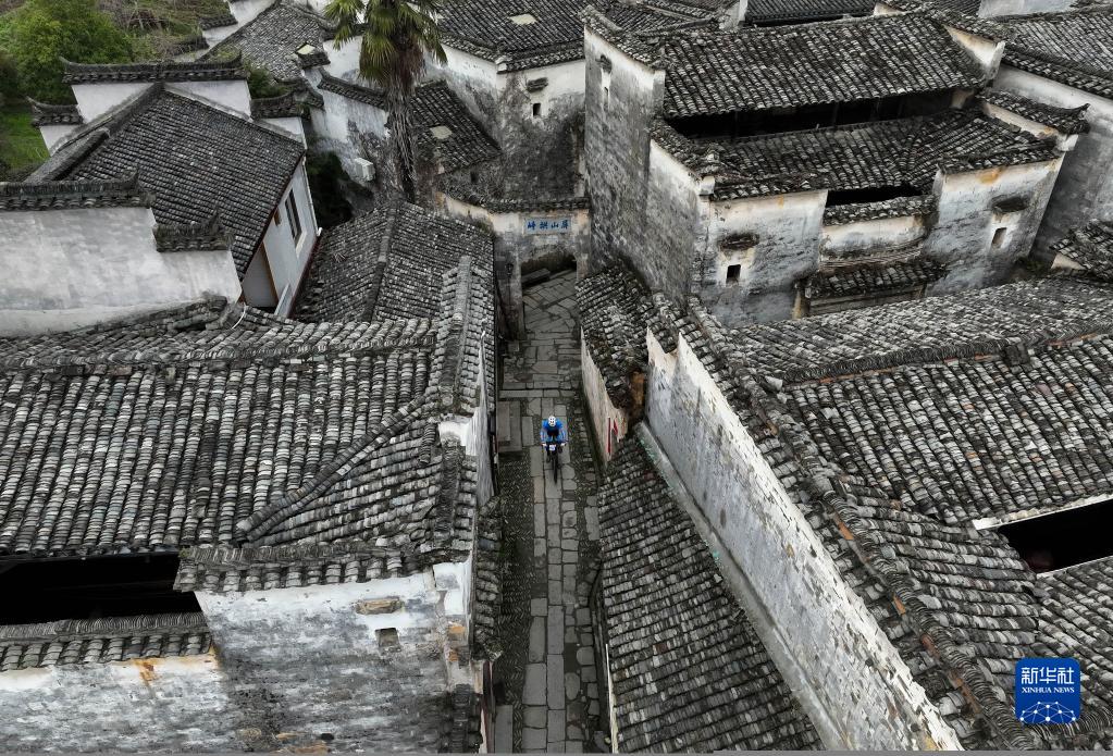 3月25日,一名车手在比赛中骑行(无人机照片)。新华社发(施亚磊摄)