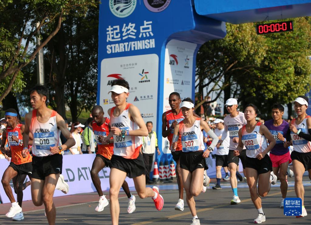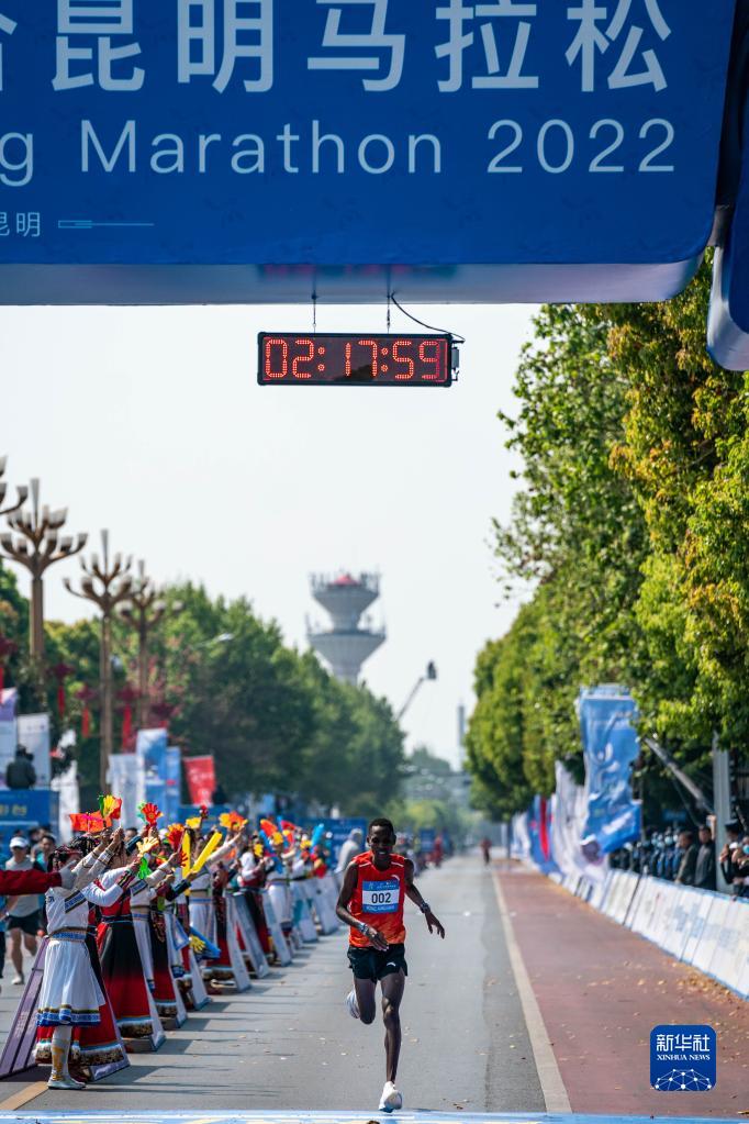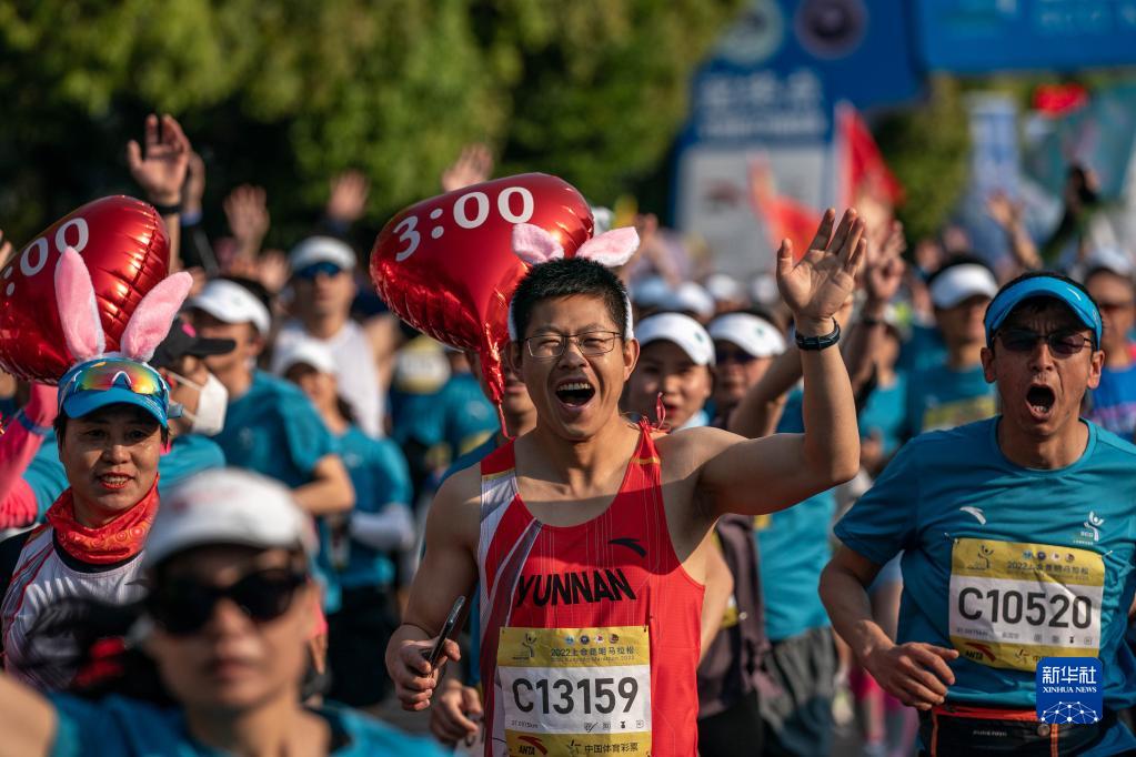 当日,2022上合昆明马拉松在云南昆明滇池湖畔的海埂会堂鸣枪起跑。