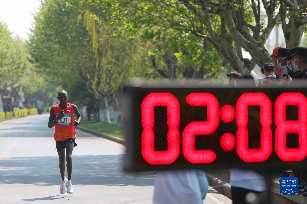 3月26日,埃塞俄比亚选手洪德在比赛中冲刺。他以2小时19分的成绩获得男子全程马拉松季军。新华社记者 胡超 摄