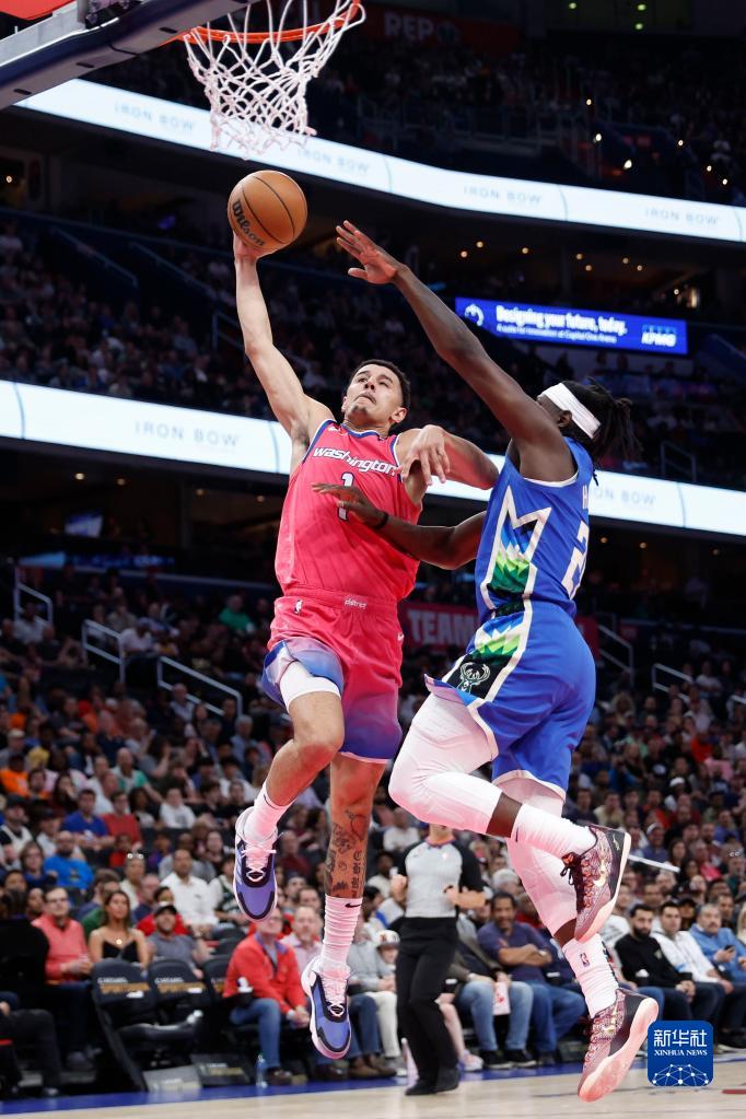 4月4日,奇才队球员加福德(左)在比赛中上篮。新华社发(沈霆摄)
