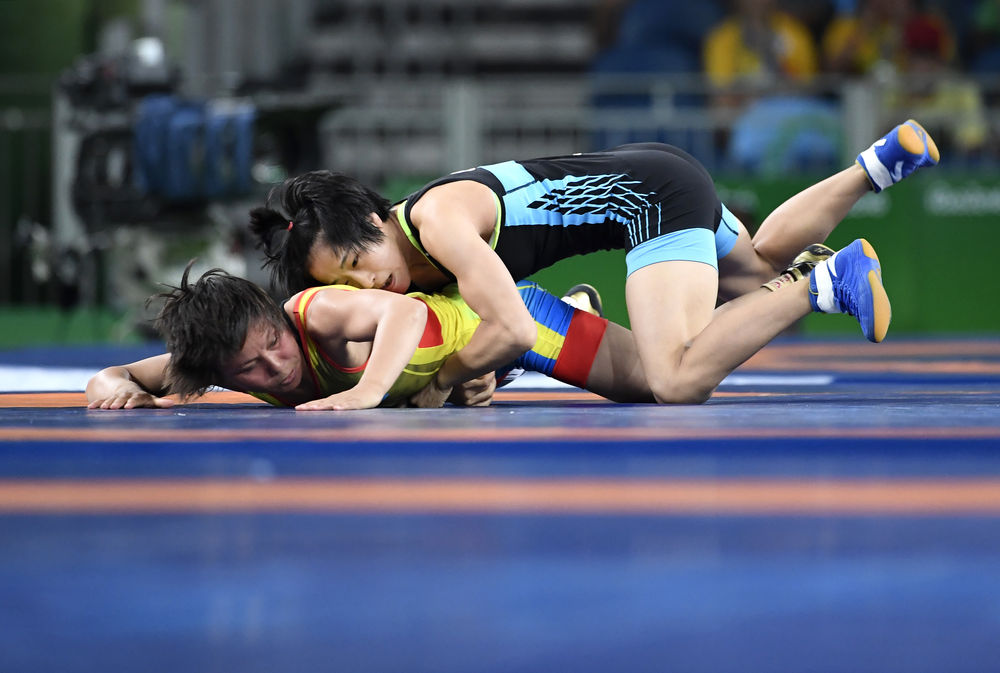 2016年8月17日,在里约奥运会女子自由式摔跤48公斤级铜牌争夺战中,中国选手孙亚楠战胜哈萨克斯坦选手叶希莫娃,获得铜牌。新华社记者 武巍 摄