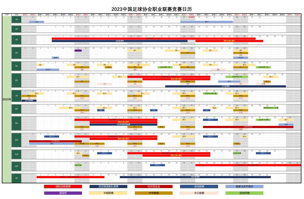 此外,2023赛季中超、中甲、中乙俱乐部国内转会注册的第一个转会窗口结束时间均做出调整:中超调整为4月12日,中甲调整为4月19日,中乙调整为4月26日。