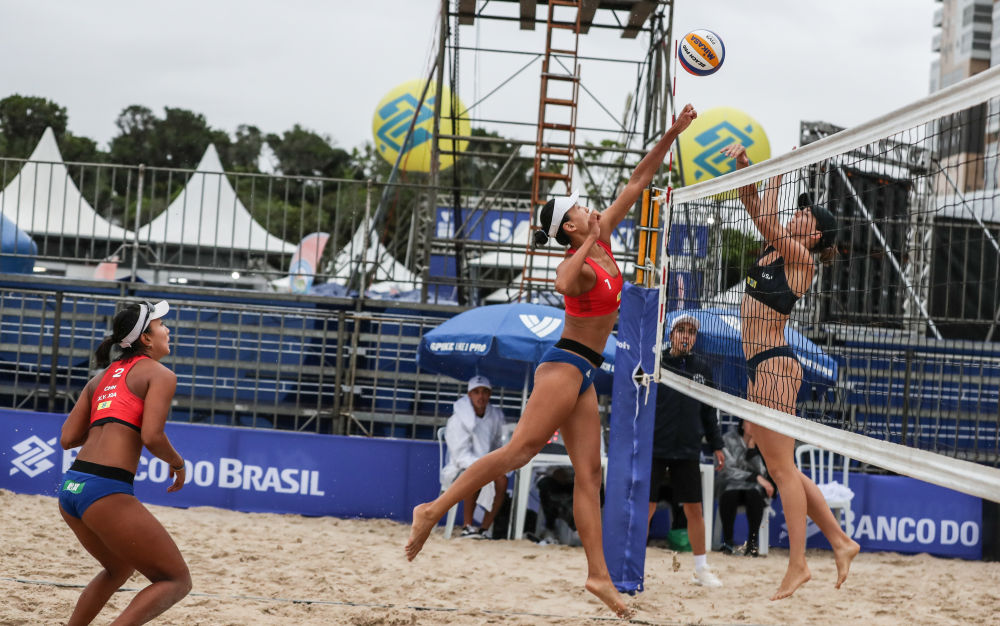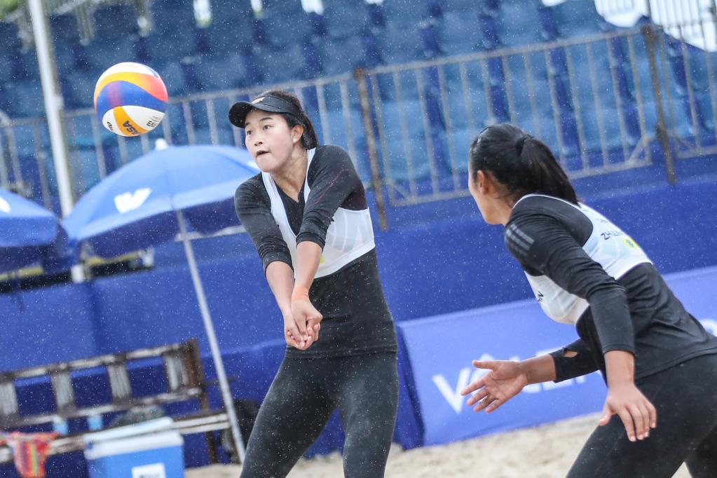 新华社巴西伊塔佩马4月7日电(记者赵焱)世界沙排巡回赛巴西伊塔佩马站比赛7日的比赛遭遇阴雨天,中国队王鑫鑫/朱玲娣和薛晨/夏欣怡晋级16强。