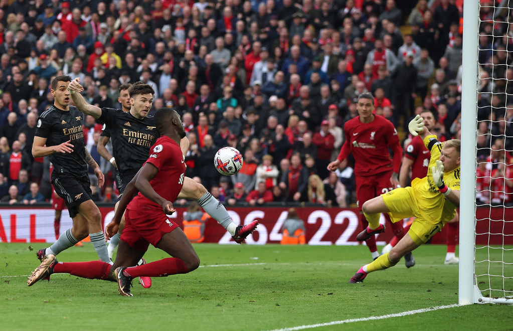 全力防守的阿森纳在比赛最后时刻遭遇利物浦的猛攻。虽然努涅斯的单刀射门被阿森纳门将拉姆斯代尔化解,但阿诺德第87分钟突入禁区右路下底传中,替补上场的菲尔米诺后点头球攻门将比分扳平。此后利物浦仍有机会进球,但2:2的比分最终保持到终场哨响。