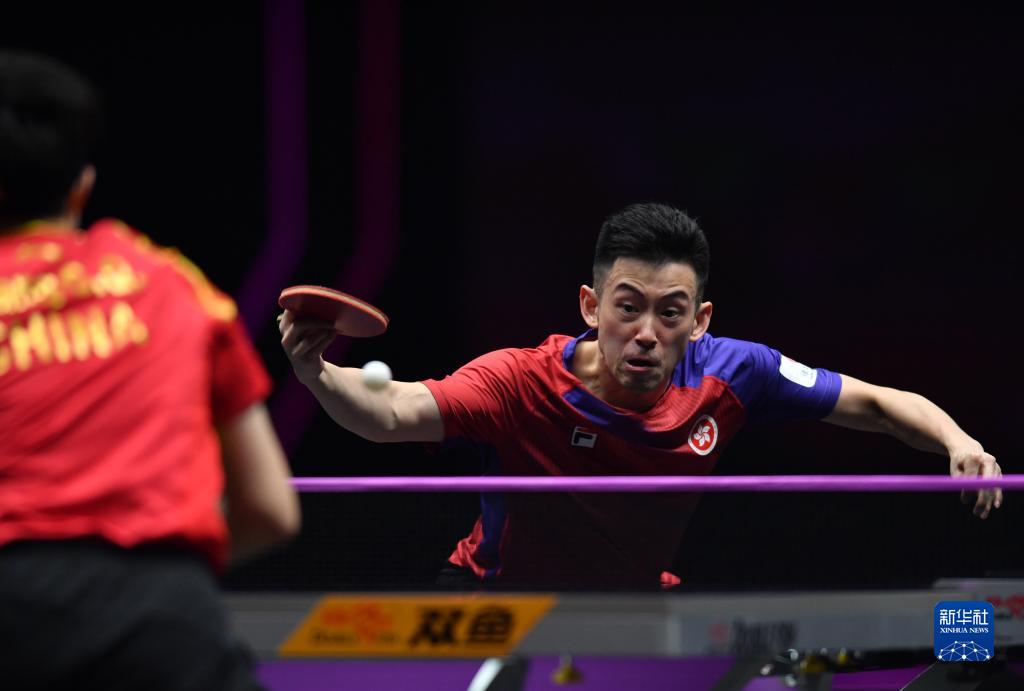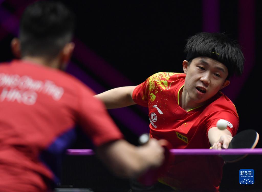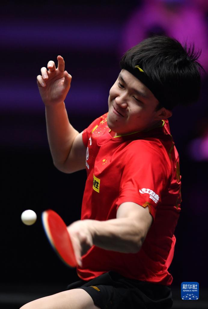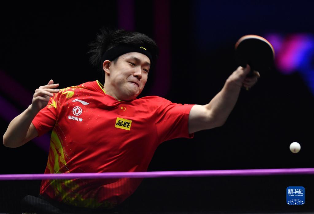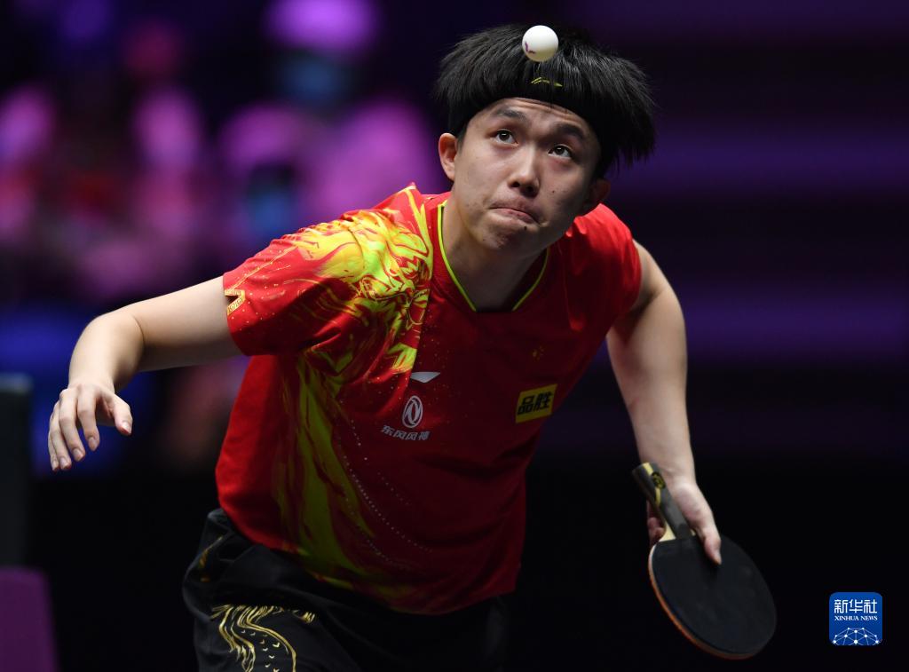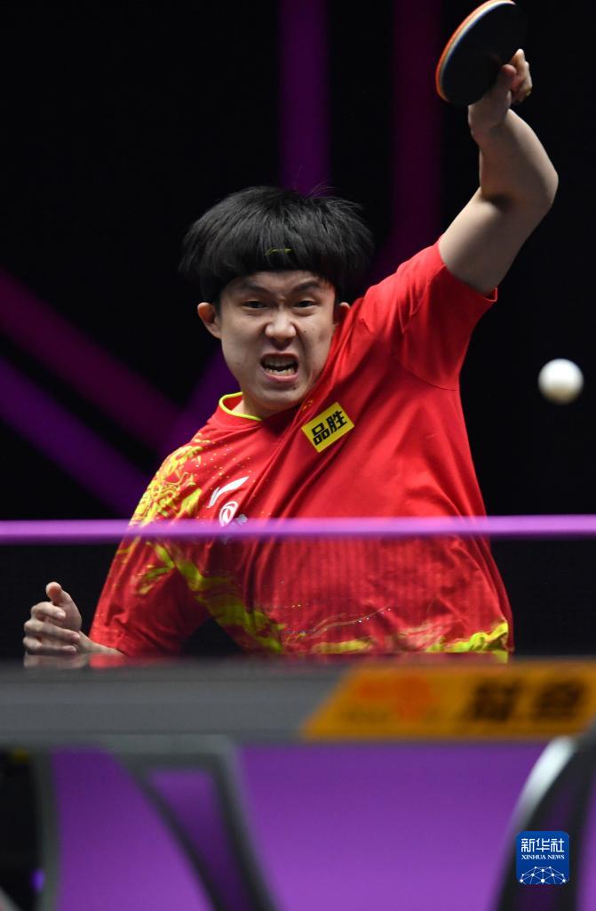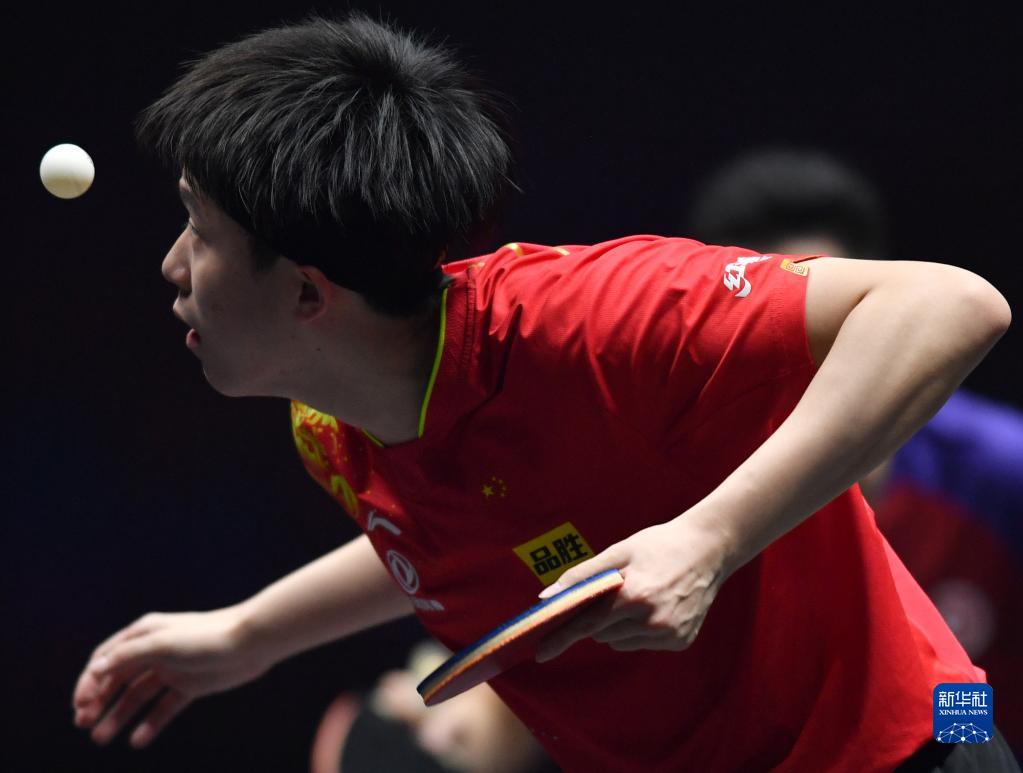 4月10日,王楚钦在比赛中回球。新华社记者 李嘉南 摄