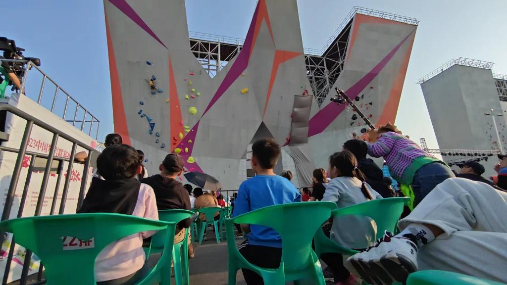 第一眼看到这块亚洲最大室外攀岩场地时,记者被其造型和体积震撼之余,也心生疑问:为什么要把一块城市核心体育场馆外的空间,留给一项小众运动?
