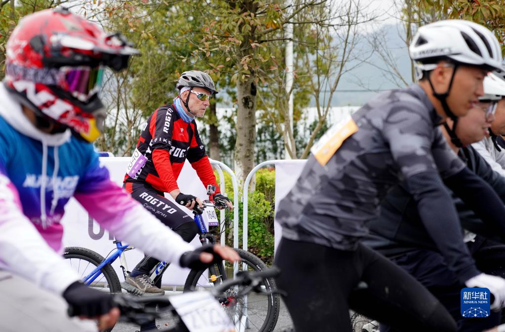 阿明在2023中国黄山(黟县)国际自行车公开赛男子山地赛公开组比赛前(3月25日摄)。新华社记者 张晨 摄