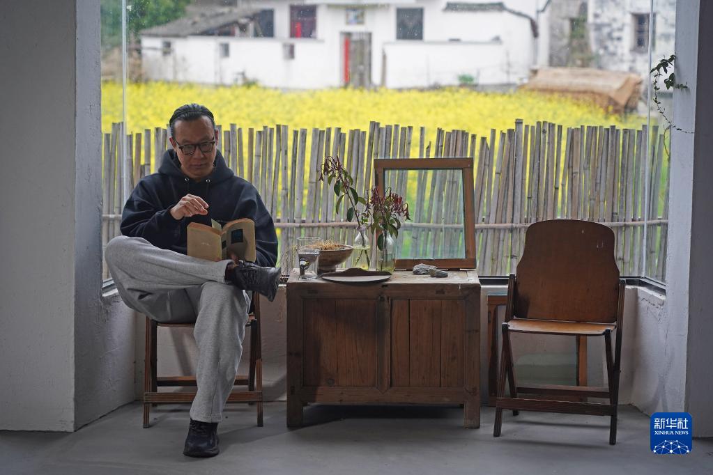 刘龙在民宿里阅读(3月29日摄)。新华社记者 万象 摄
