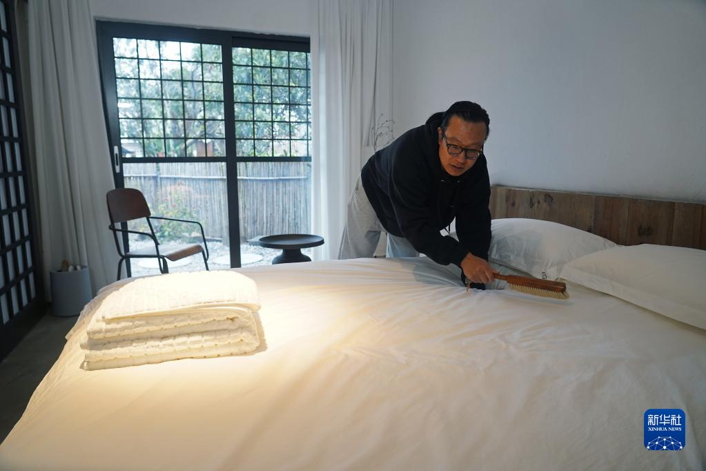 刘龙在民宿里打扫房间卫生(3月29日摄)。新华社记者 万象 摄