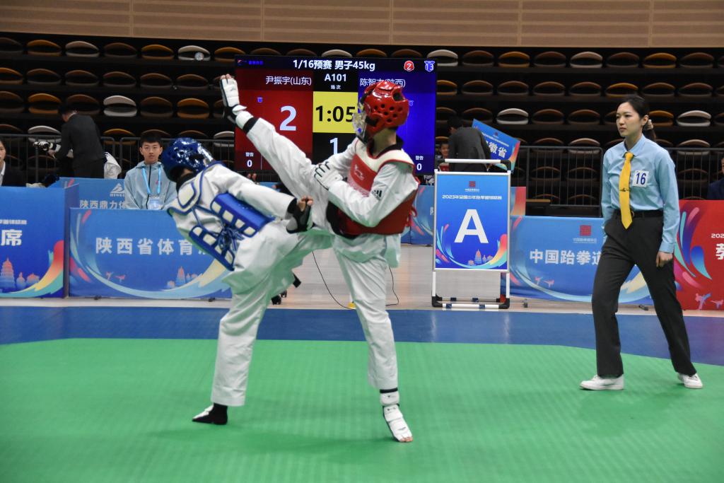 新华社西安4月24日电(记者郑昕)24日,2023年全国少年跆拳道锦标赛在西安开赛,来自全国各地30支代表队的340多名少年跆拳道运动员在陕西省体育馆展开比拼。