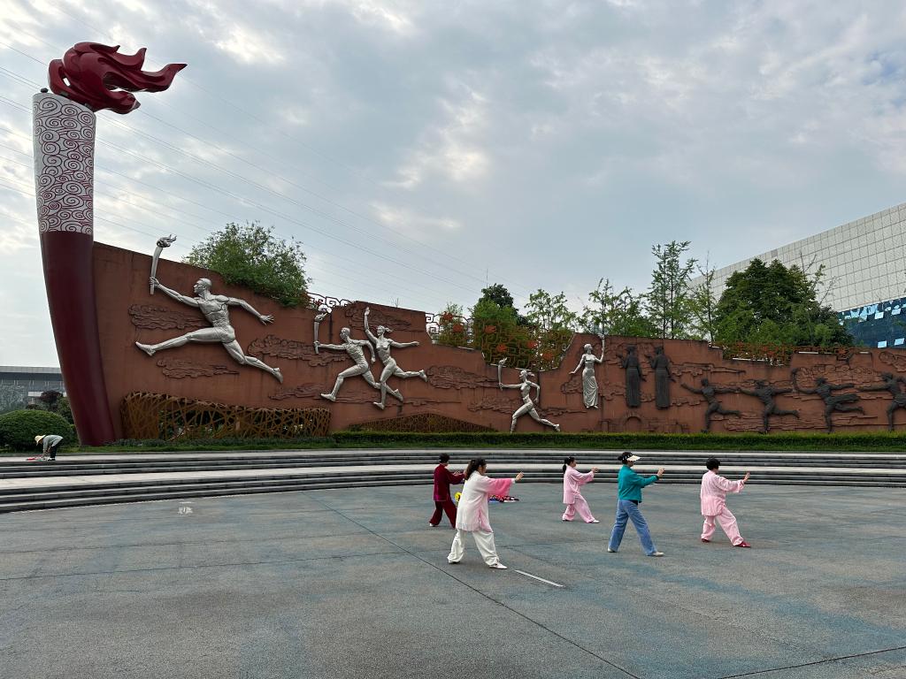 新华社成都4月26日电(记者 吴博文、陈地)第四届全国老年人体育健身大会25日在泸州奥林匹克体育公园体育馆开幕,体育公园内绿荫环抱,参与体育锻炼的人群随处可见。