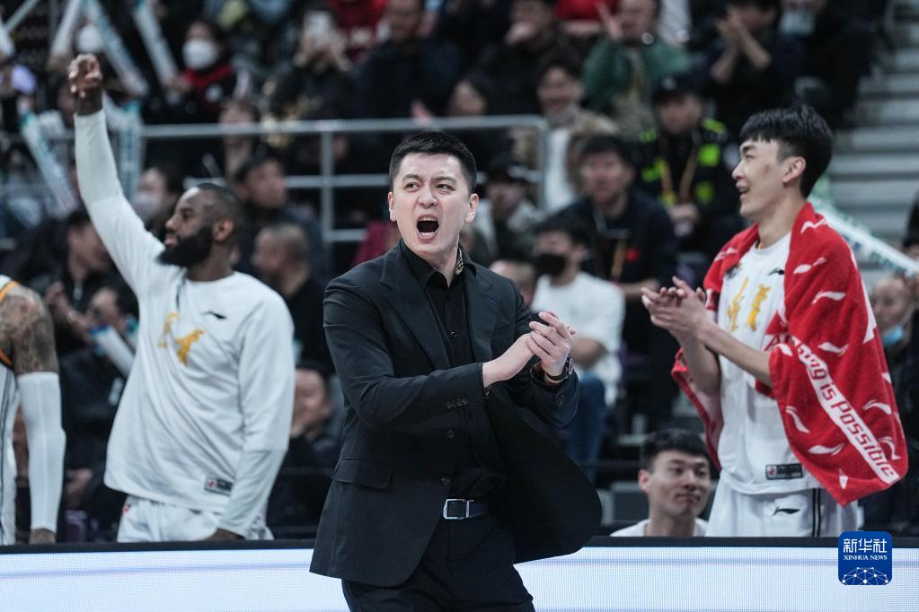 4月26日,辽宁本钢队主教练杨鸣在场边指挥。新华社记者 潘昱龙 摄