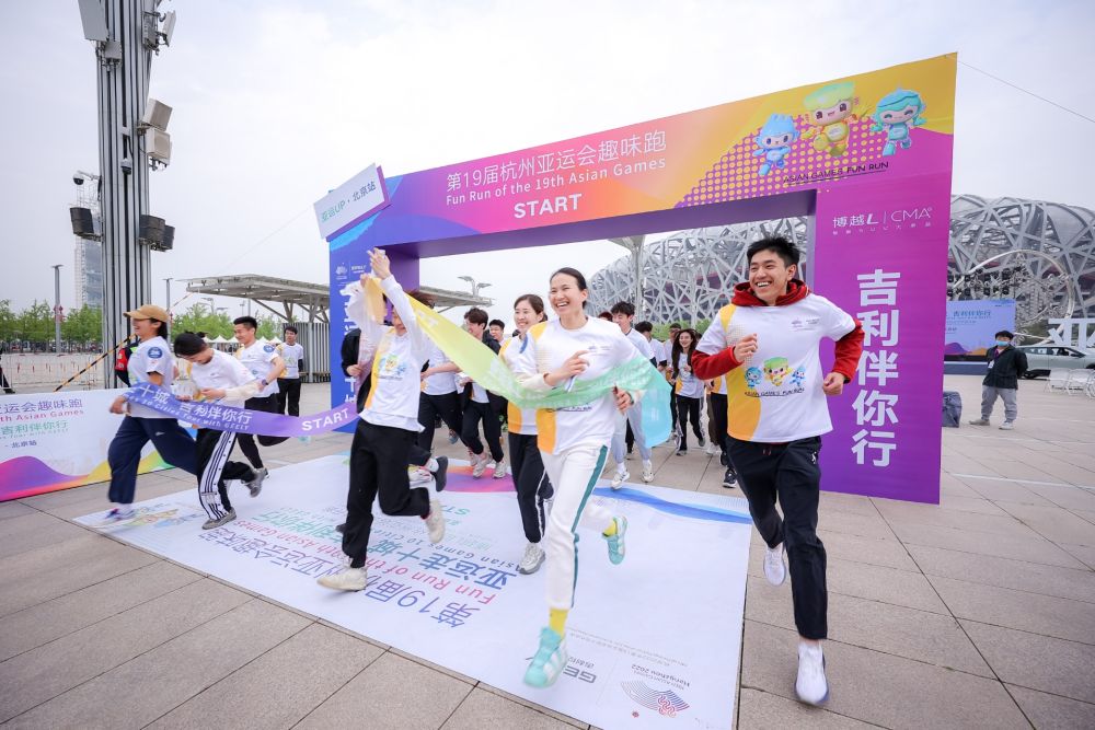 趣味跑活动“亚运Up”当天下午在北京奥林匹克公园举行,奥运元素与亚运文化融合,展现出独特魅力。随后,“亚运Music”在北京奥林匹克公园庆典广场上演,现场发布了杭州亚运会官方主题推广曲《有你有我》,表达团结友好的真切祝愿,共筑“亚运同心圆”。