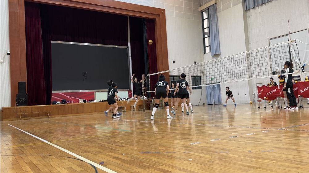 鲁迅小学学生正在进行排球训练。