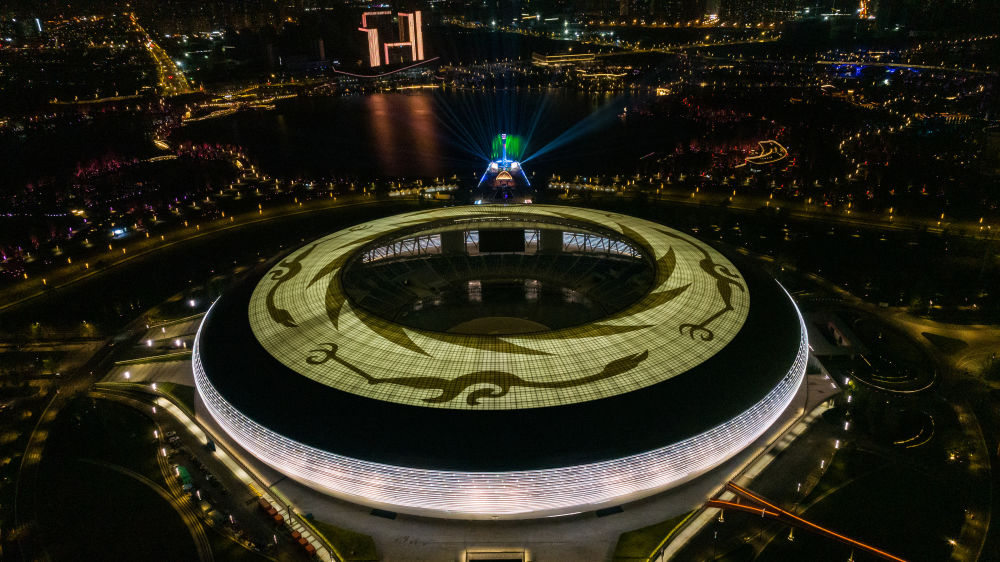 第31届世界大学生夏季运动会开幕式主体育场及主火炬。新华社记者 沈伯韩 摄