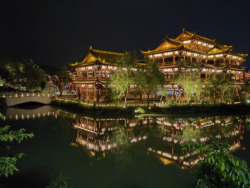 夜幕下的织金平远古镇。新华社记者罗羽摄