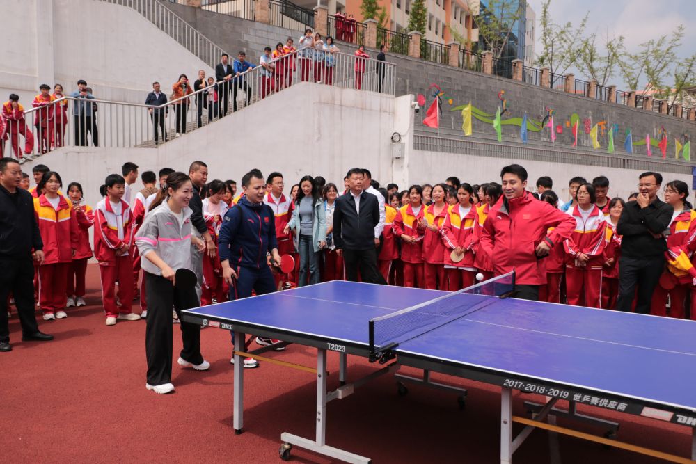在织金一中,刘诗雯通过励志演讲,向同学们分享了自己乒乓生涯中历经的选择、磨炼、挑战、挫折和荣耀。“希望通过分享我个人的体育经历,给孩子们带来一些正向影响,激励他们在人生道路上坚持不懈、努力拼搏。”她说。