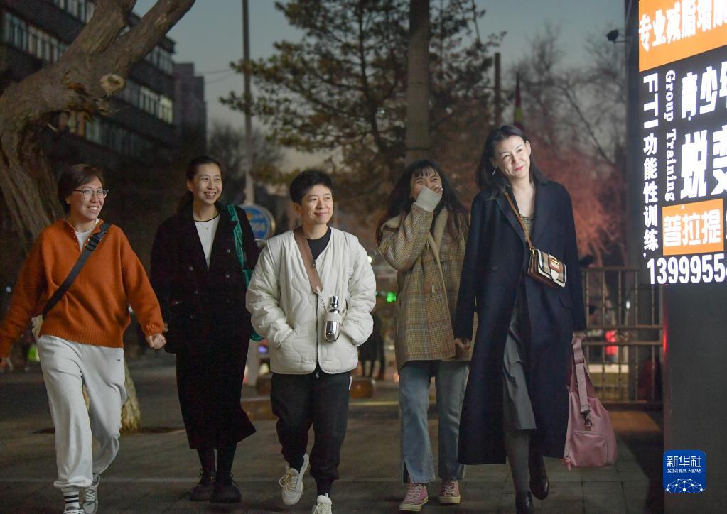 这是“疆来”女子篮球俱乐部部分成员前往健身房进行体能训练(3月7日摄)。新华社记者 王菲 摄
