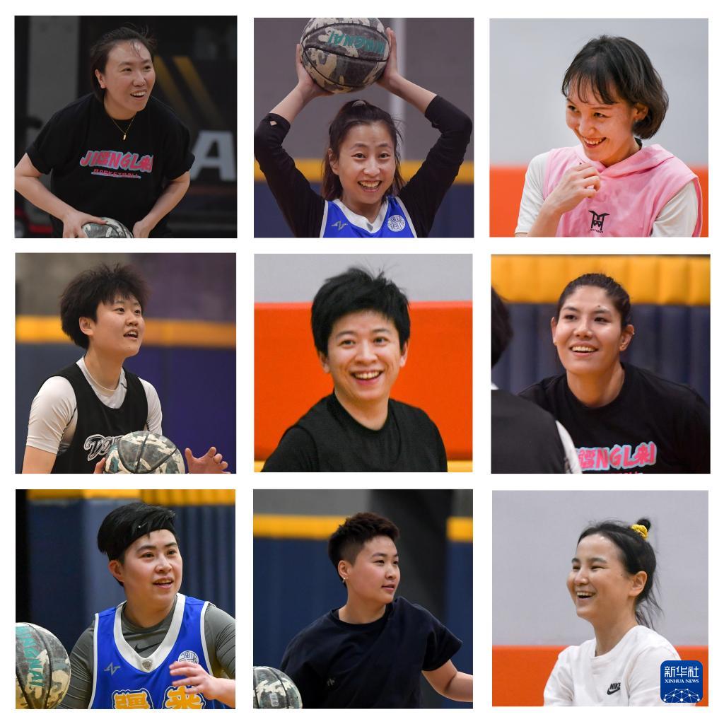 这是“疆来”女子篮球俱乐部部分成员的拼版照片。新华社记者 王菲 摄